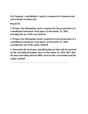 1. Prepare the eliminating entries required for the preparation of a