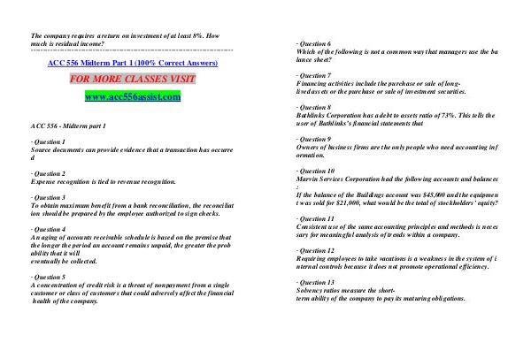 ACC 556 Midterm Part 1 (100% Correct Answers)
