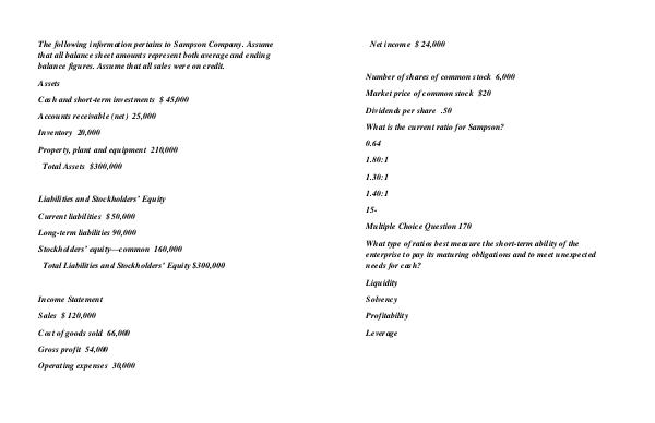 The following information pertains to Sampson Company. Assume that all balance sheet amounts represent both average and ending balance figures. Assume that all sales were on credit.