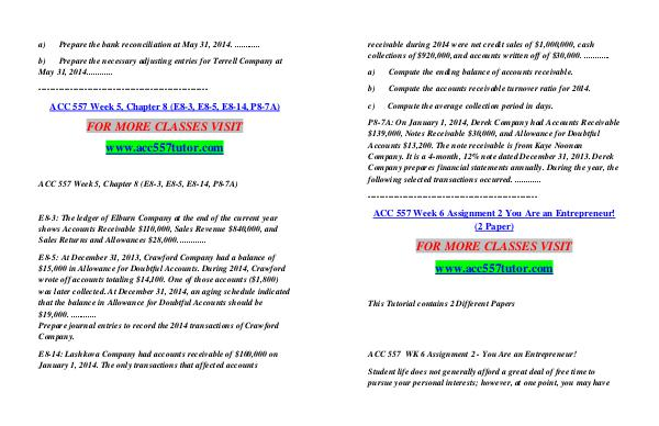 ACC 557 Week 6 Assignment 2 You Are an Entrepreneur!