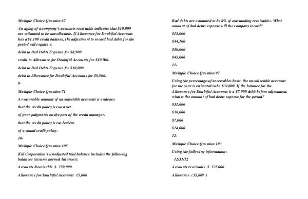 Bad debts are estimated to be 6% of outstanding receivables. What
