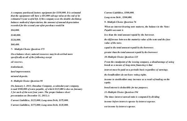 Current Liabilities, $125,000; Long-term Debt, $375,000.
