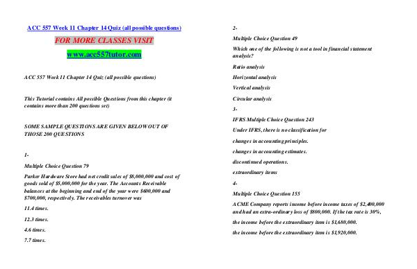 ACC 557 Week 11 Chapter 14 Quiz (all possible questions)