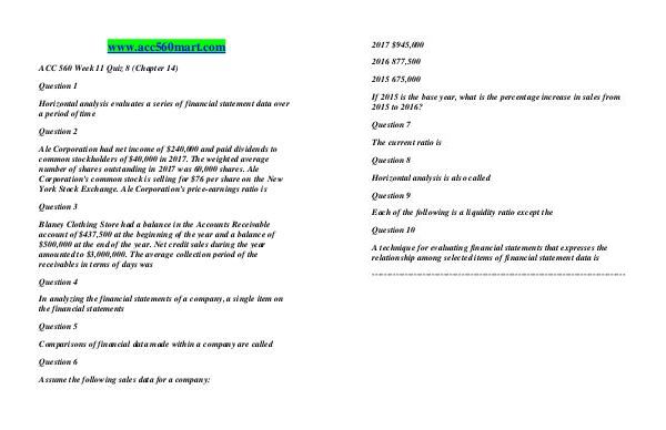 ACC 560 Week 11 Quiz 8 (Chapter 14)