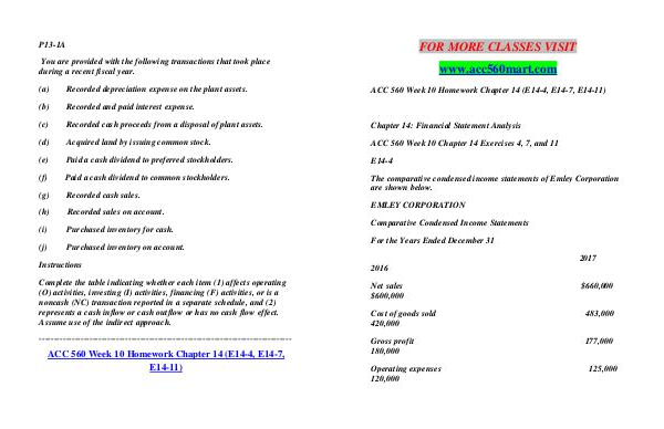 ACC 560 Week 10 Homework Chapter 14 (E14-4, E14-7,