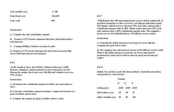 contribution margin ratio of 20%. Brake repair represents 30% of its