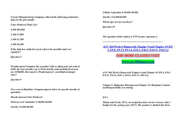 ACC 560 Week 6 Homework Chapter 9 and Chapter 10 (E9-