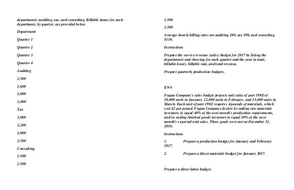 departments: auditing, tax, and consulting. Billable hours for each