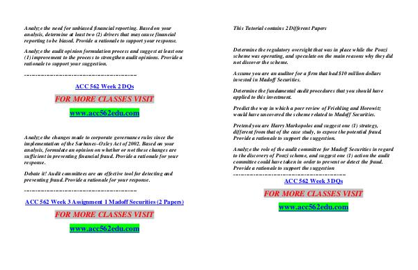 ACC 562 Week 3 Assignment 1 Madoff Securities (2 Papers)