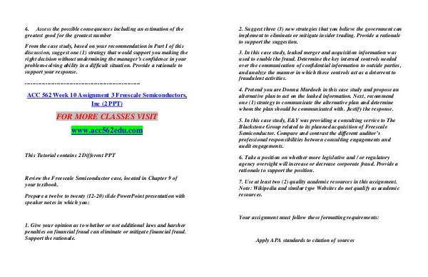 ACC 562 Week 10 Assignment 3 Freescale Semiconductors,