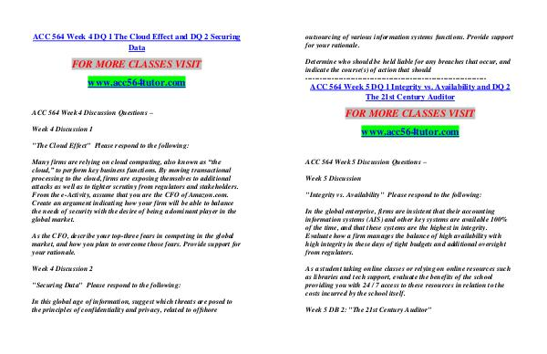 ACC 564 Week 4 DQ 1 The Cloud Effect and DQ 2 Securing Data
