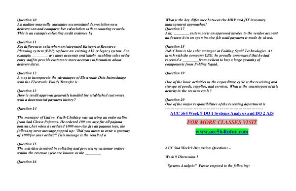 ACC 564 Week 9 Discussion Questions – Week 9 Discussion 1 " Systems Analysis " Please respond to the following: