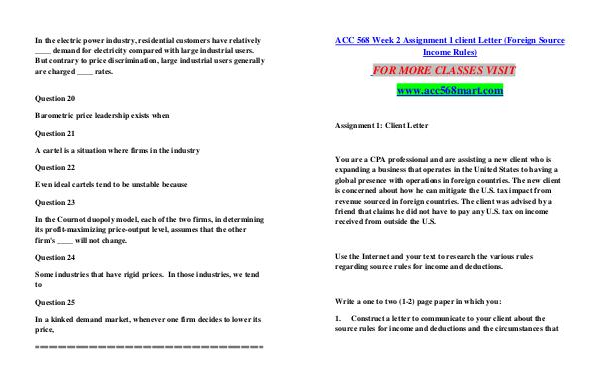 ACC 568 Week 2 Assignment 1 client Letter( Foreign Source Income Rules)