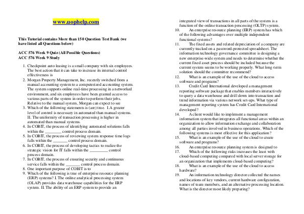 ACC 576 Week 9 Quiz( All Possible Questions) ACC 576 Week 9 Study