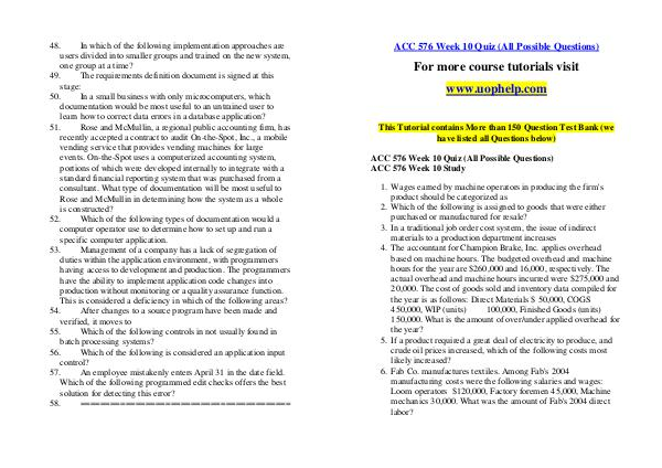 ACC 576 Week 10 Quiz( All Possible Questions) For more course tutorials visit www. uophelp. com