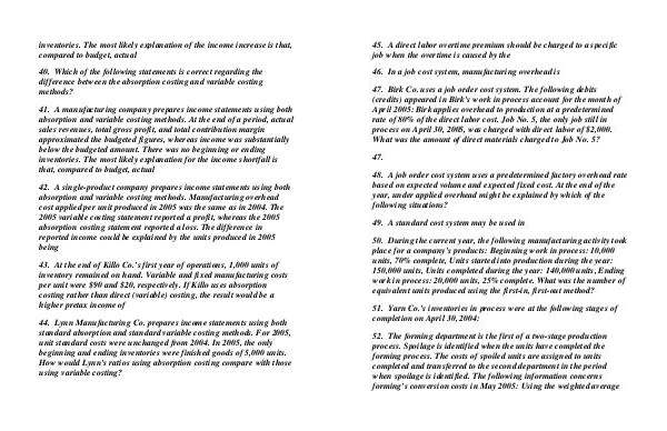 per unit were $90 and $20, respectively. If Killo uses absorption