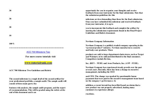 milestone are less demanding than those for the final submission. Once you have submitted this milestone and received feedback from your instructor, it is up to