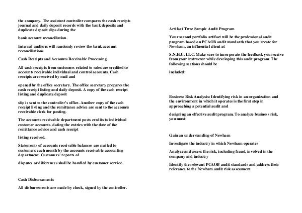 Your second portfolio artifact will be the professional audit program based on PCAOB audit standards that you create for Newham, an influential client at