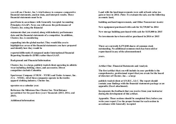 The first artifact that you will include in your portfolio is the comprehensive, professional report that you create for the board of directors of Chester, Inc.— a large