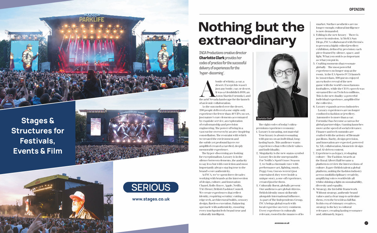 INCA Productions creative director Charlotte Clark provides her codes of practice for the successful delivery of experiences for the‘ hyper-discerning’.