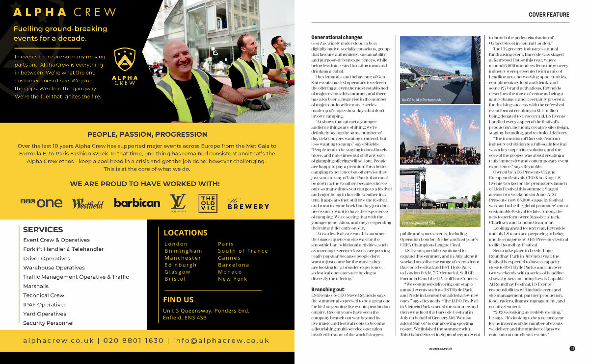 LS Events portfolio continued to expand this summer, and in July alone it worked on a diverse range of events from Barcode Festival and BST Hyde Park to London Pride, 7 / 7 Memorial, Sail GP, Formula E and the LIV Golf Fan Concert.