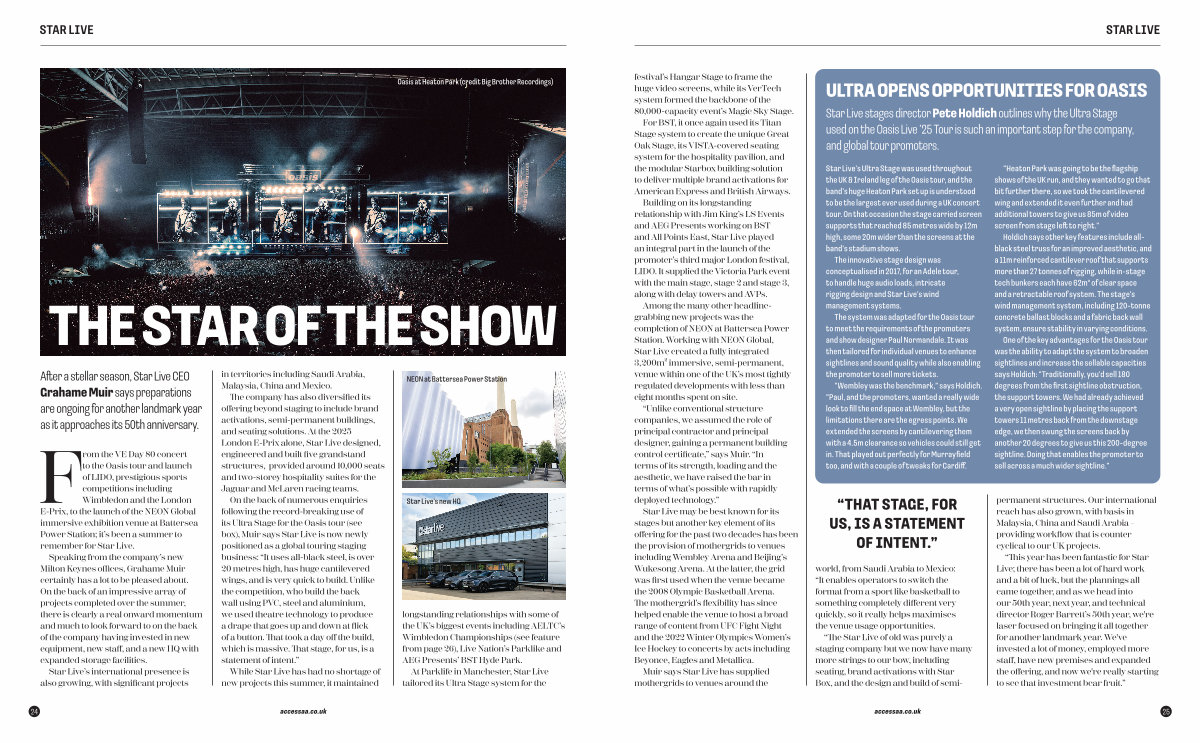 “ The Star Live of old was purely a staging company but we now have many more strings to our bow, including seating, brand activations with Star Box, and the design and build of semipermanent structures. Our international reach has also grown, with basis in Malaysia, China and Saudi Arabia – providing workflow that is counter cyclical to our UK projects.