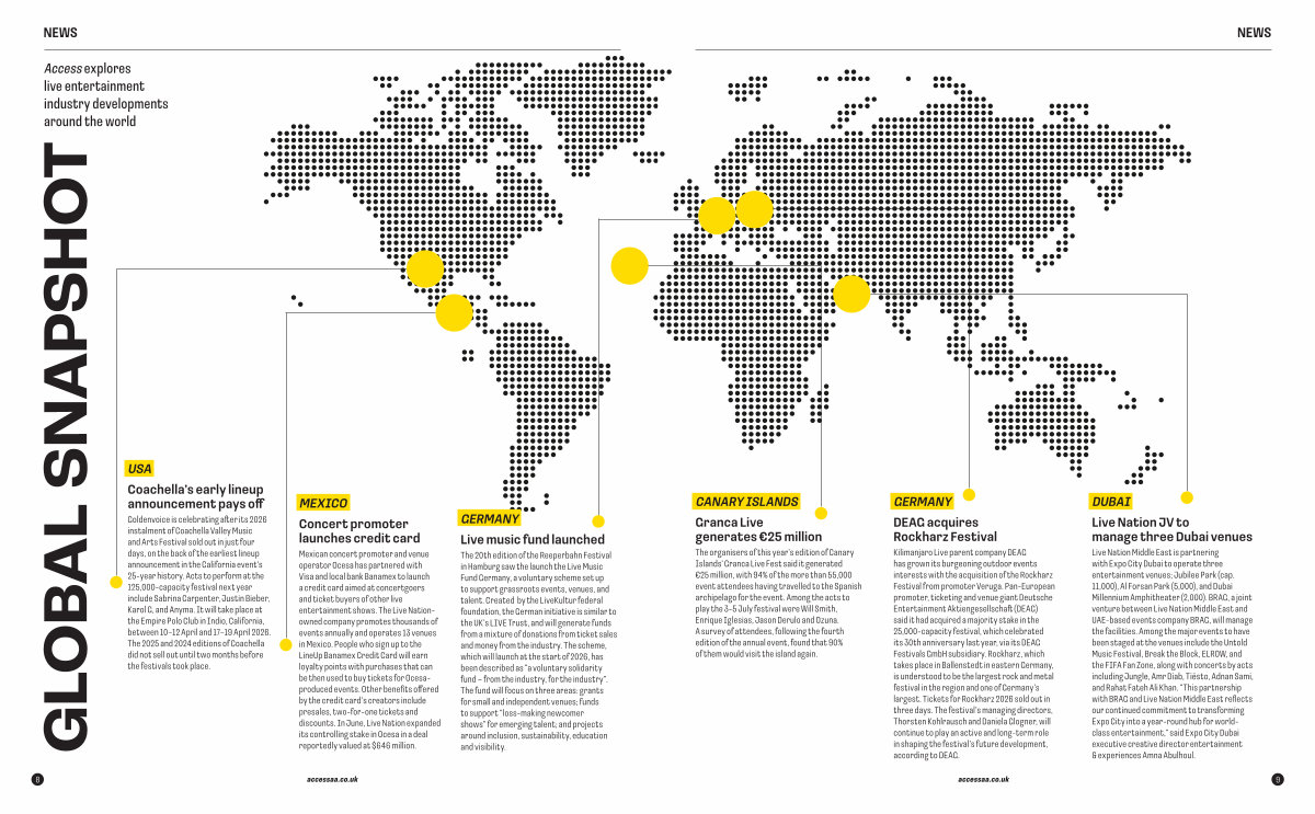 Live Nation Middle East is partnering with Expo City Dubai to operate three entertainment venues; Jubilee Park( cap. 11,000), Al Forsan Park( 5,000), and Dubai Millennium Amphitheater( 2,000). BRAG, a joint venture between Live Nation Middle East and UAE-based events company BRAG, will manage the facilities. Among the major events to have been staged at the venues include the Untold Music Festival, Break the Block, ELROW, and the FIFA Fan Zone, along with concerts by acts including Jungle, Amr Diab, Tiësto, Adnan Sami, and Rahat Fateh Ali Khan.“ This partnership with BRAG and Live Nation Middle East reflects our continued commitment to transforming Expo City into a year-round hub for worldclass entertainment,” said Expo City Dubai executive creative director entertainment & experiences Amna Abulhoul.
