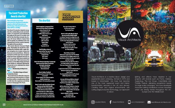 Visual Architects is a creative decor , design and experiential event company , formed in 2013 and based in Manchester . We have fast become one of the most respected event and interior transformation services in the UK and abroad . Creating fresh and original environments with cutting-edge production technology , our approach to decor , lighting and effects have resulted in our projects with brands such as Puma , Adidas , Superdrug , The Hut Group , Creamfields and Parklife Festival , delivering exceptional results for large-scale campaigns . We have developed innovative setting installations across industries which are driving trends throughout the UK , Europe and the Middle East .