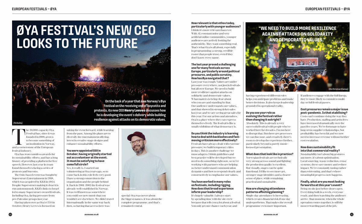 I think it’ s more relevant than ever. With AI, constant noise and very artificial online communities, younger audiences are actively looking for authenticity. They want something real. That’ s what Øya is all about, especially in programming; a strong, credible roster that people trust, even if they don’ t know every name.