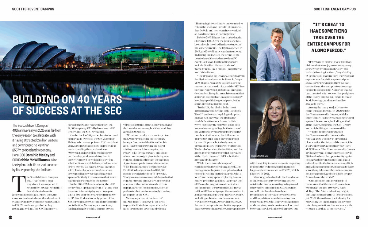 “ The demand for tenancy, specifically in the Hydro, has been unbelievable,” says McWilliams.“ Glasgow is such a strong market, a real music city, and the SEC has become renowned globally as an events destination. It ' s quite an achievement that a market as small as Glasgow is not only keeping up with the global pace, but in some areas leading the field.