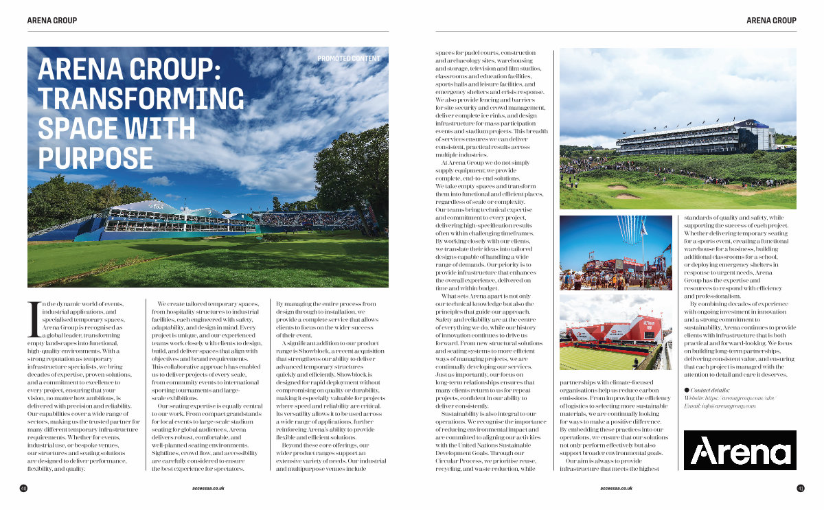 A significant addition to our product range is Showblock, a recent acquisition that strengthens our ability to deliver advanced temporary structures quickly and efficiently. Showblock is designed for rapid deployment without compromising on quality or durability, making it especially valuable for projects where speed and reliability are critical. Its versatility allows it to be used across a wide range of applications, further reinforcing Arena’ s ability to provide flexible and efficient solutions.