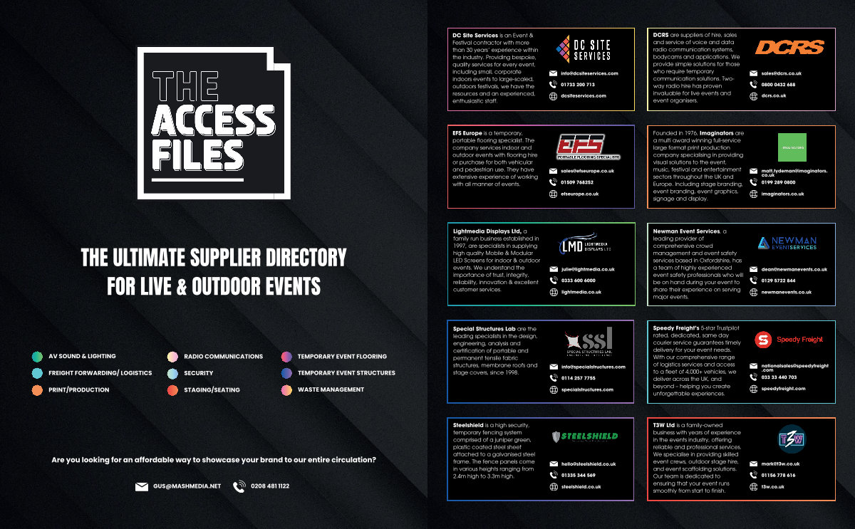 THE ULTIMATE SUPPLIER DIRECTORY FOR LIVE & OUTDOOR EVENTS