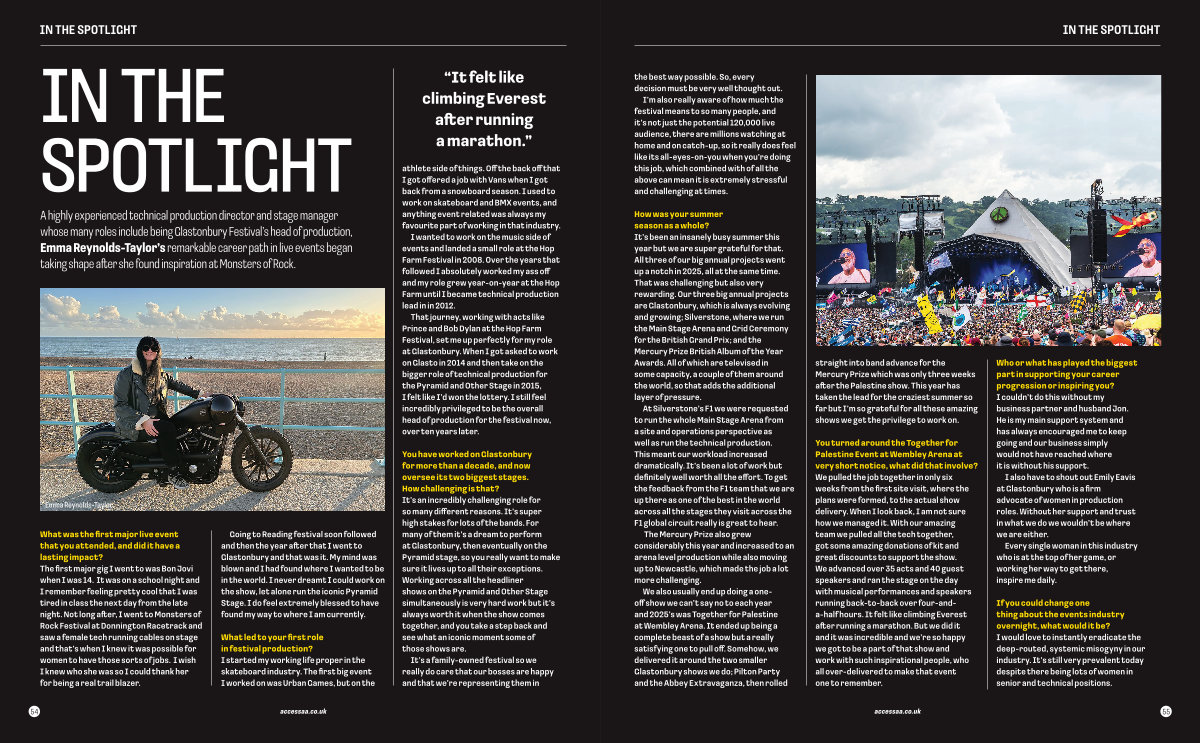 How was your summer season as a whole? It’ s been an insanely busy summer this year but we are super grateful for that. All three of our big annual projects went up a notch in 2025, all at the same time. That was challenging but also very rewarding. Our three big annual projects are Glastonbury, which is always evolving and growing; Silverstone, where we run the Main Stage Arena and Grid Ceremony for the British Grand Prix; and the Mercury Prize British Album of the Year Awards. All of which are televised in some capacity, a couple of them around the world, so that adds the additional layer of pressure.
