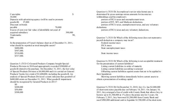Question 5. (TCO C) General Products Company bought Special