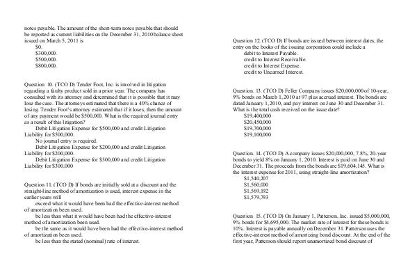 Question 15. (TCO D) On January 1, Patterson, Inc. issued $5,000,000,