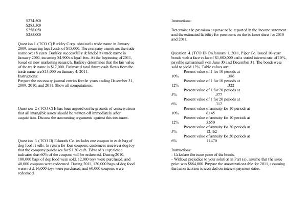 Question 4. (TCO D) On January 1, 2011, Piper Co. issued 10-year