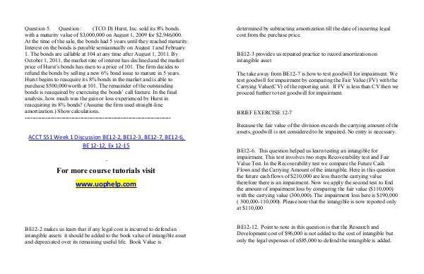 ACCT 551 Week 1 Discussion BE12-2, BE12-3, BE12-7, BE12-6,