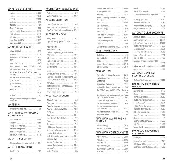 Aclara / Hubbell .................... 3079 Emerson .......................... 25114 Fluid Conservation Systems .......... 7079 ITRON ............................ 16078 Jacobi Carbons Inc ................ 10067 JPCL - Technology / Water BidTracker .. 3105 Kamstrup Water Metering ............ 3050