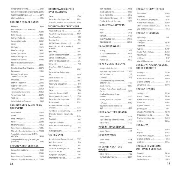 Ixom Watercare ..................... 9095 Jacobi Carbons Inc ................ 10067 Kasco Marine , Inc . .................. 3072 Mazzei Injector Company , LLC ....... 17090 Purolite , An Ecolab Company . . . . . . . . 11059