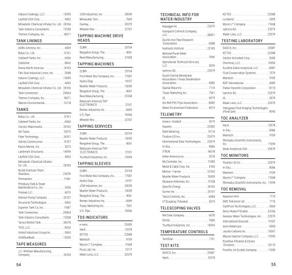 Spatial Wave Inc . ................... 7114 Tripac Marketing Inc . ................ 7061 UL ................................ 6079 Uni-Bell PVC Pipe Association ........ 8082 Water Environment Federation ........ 4070