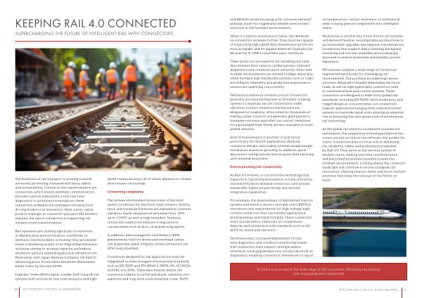 Together, these efforts signal a wider shift towards rail systems built around AI, real-time analytics and highspeed communication, all of which depend on reliable interconnect technology.