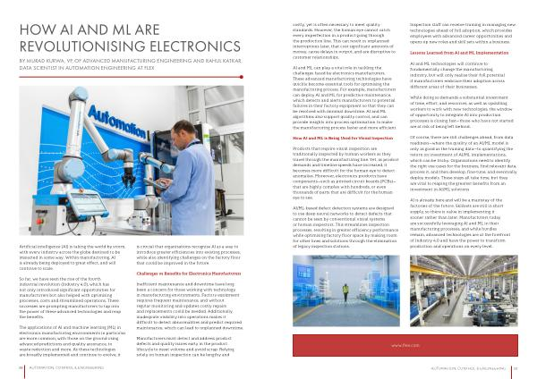 BY MURAD KURWA, VP, OF ADVANCED MANUFACTURING ENGINEERING AND RAHUL KATKAR, DATA SCIENTIST IN AUTOMATION ENGINEERING AT FLEX