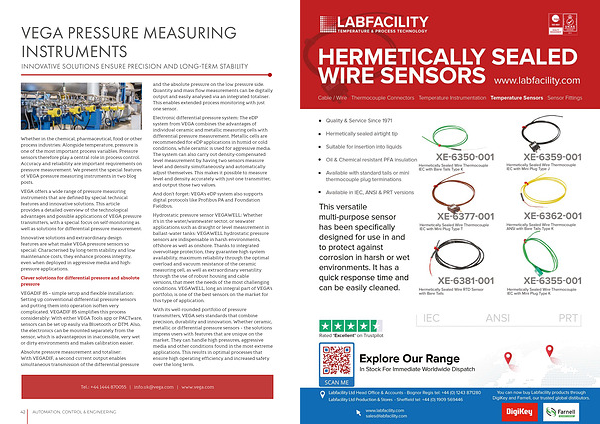 Innovative solutions and extraordinary design features are what make VEGA pressure sensors so special: Characterised by long-term stability and low maintenance costs, they enhance process integrity, even when deployed in aggressive media and highpressure applications.