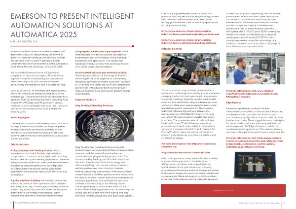 EMERSON TO PRESENT INTELLIGENT AUTOMATION SOLUTIONS AT AUTOMATICA 2025
