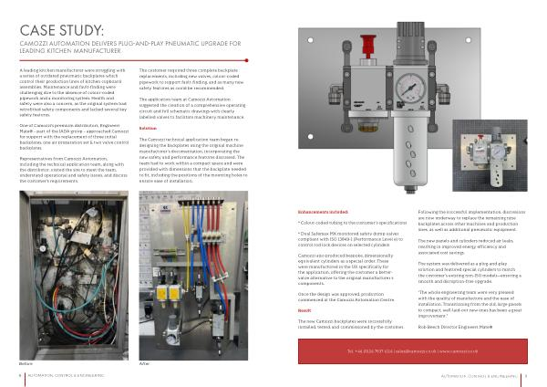 The new Camozzi backplates were successfully installed, tested, and commissioned by the customer.