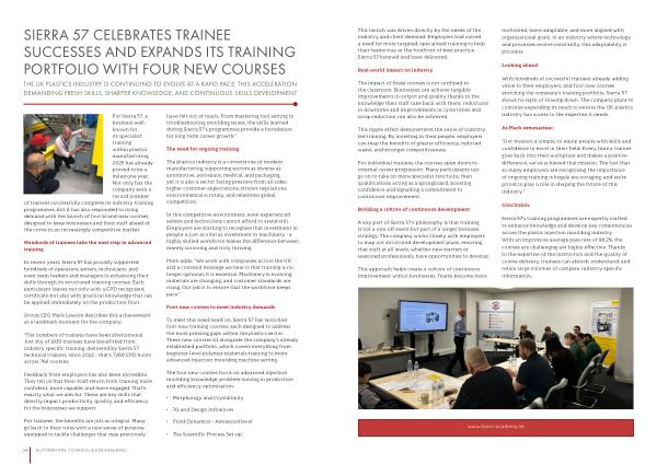 For Sierra 57, a business wellknown for its specialist training within plastics manufacturing, 2025 has already proved to be a milestone year. Not only has the company seen a record number of trainees successfully complete its industry training programmes, but it has also responded to rising demand with the launch of four brand-new courses, designed to keep businesses and their staff ahead of the curve in an increasingly competitive market.