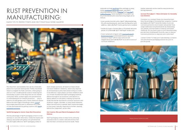 materials include VpCI ®-126 film and bags in many styles, CorShield ® VpCI ®-146 paper, and VpCI ® emitting materials such as BioPad ® and Cor-Pak ® 8-MUL Pouches. Some examples of how parts can be protected between manufacturing stages are as follows: