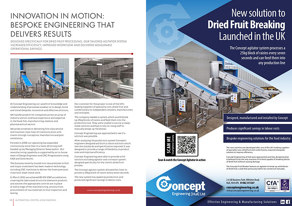 Concept Engineering were able to provide a full solution including agitator and conveyor system designed specifically for the client’ s dried fruit process.