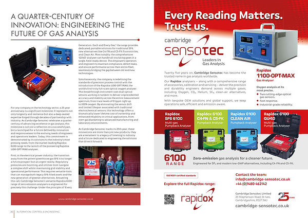 Twenty five years on, Cambridge Sensotec has become the trusted name in gas analysis worldwide.