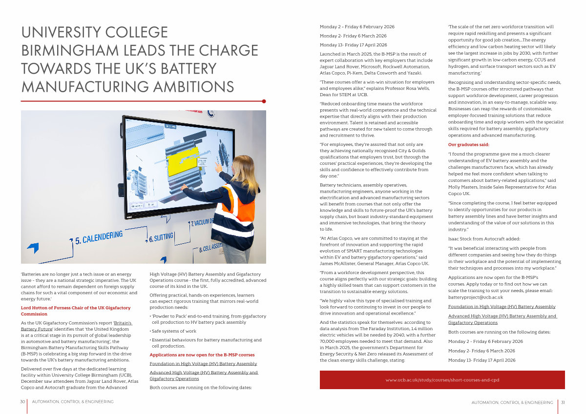 UNIVERSITY COLLEGE BIRMINGHAM LEADS THE CHARGE TOWARDS THE UK’ S BATTERY MANUFACTURING AMBITIONS